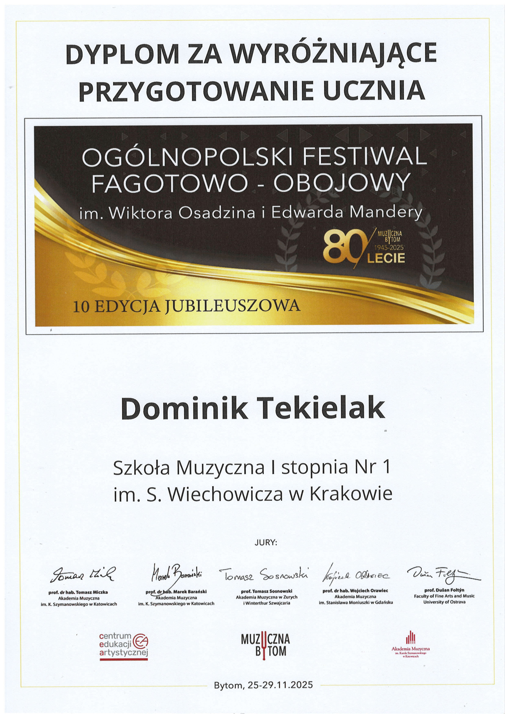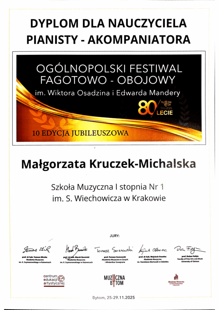 DYPLOM UZNANIA ZA WYRÓŻNIAJĄCY AKOMPANIAMENT