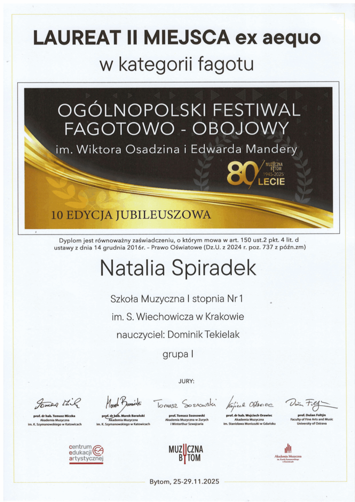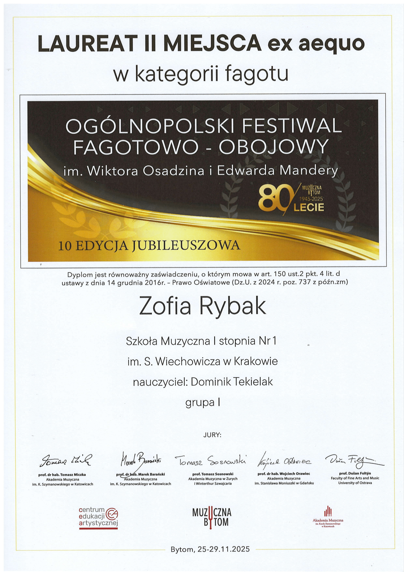 X OGÓLNOPOLSKI FESTIWAL FAGOTOWO-OBOJOWY IM. WIKTORA OSADZINA I EDWARDA MANDERY