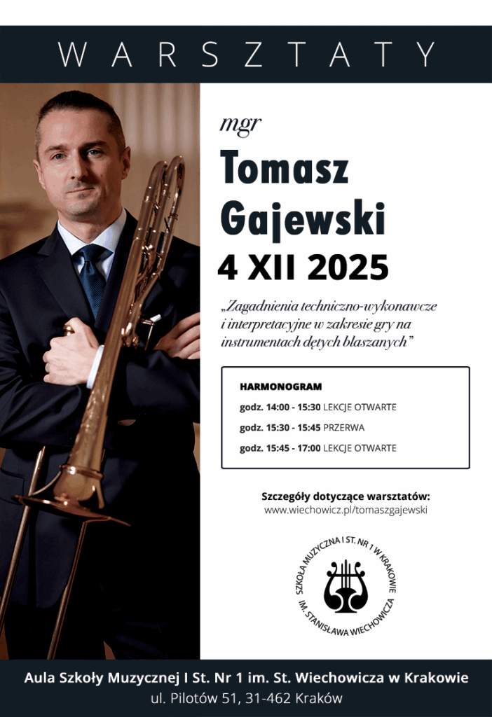 Zapraszamy na warsztaty puzonowe, które poprowadzi mgr Tomasz Gajewski